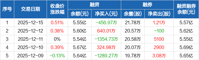 华能国际:融资净偿还456.97万元,融资余额5.55亿元(12-15)
