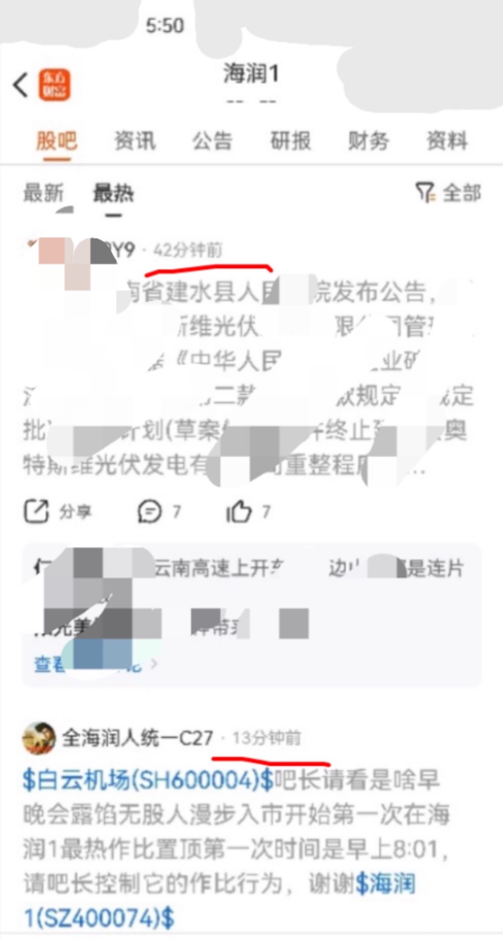 $皖通高速(SH600012)$ 吧长看下这已经是第三次发都被山,无股人大神9Y9又开始了在海润1最热开始作比截图5:50分这已经是第二次作比置顶,麻烦维护下系统时间轴错乱了,谢谢 了$海润1(SZ400074)$