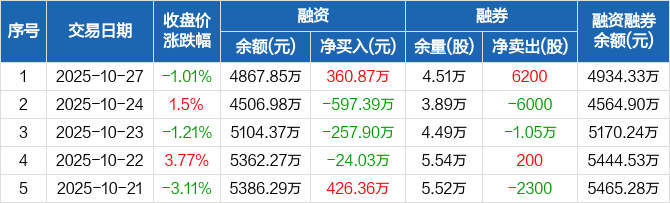 皖通高速:融资净买入360.87万元,融资余额4867.85万元(10-27)
