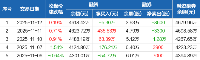 皖通高速:融资净偿还5.3万元,融资余额4618.42万元(11-12)