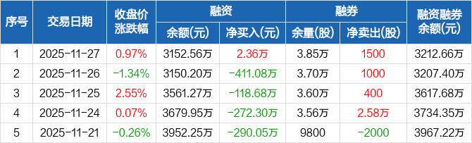 皖通高速:融资净买入2.36万元,融资余额3152.56万元(11-27)