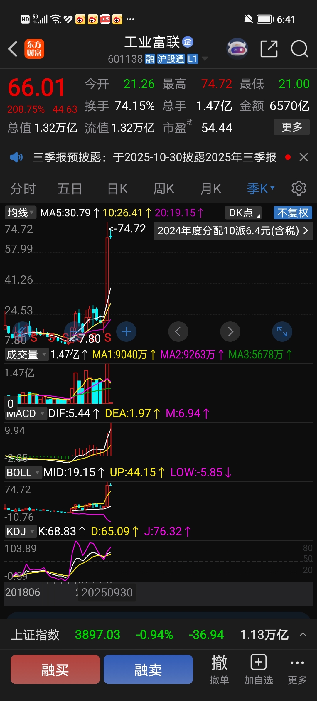 $华夏银行(SH600015)$ $工业富联(SH601138)$ 净利润只有3%的工业富联太夸张了短短60天上涨了208%,累积涨幅1000%达到了1.35万亿元总市值,而净利润只有华夏银行的60%,而总市值超过了华夏银行13倍之多