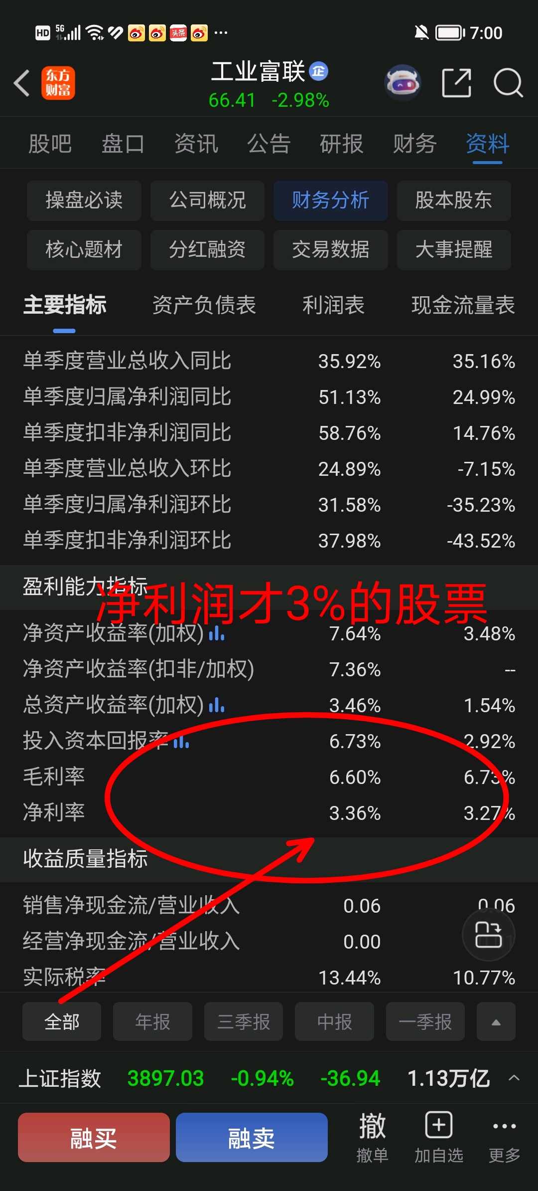 净利润只有3%的工业富联太夸张了短短60天上涨了208%,累积涨幅1000%达到