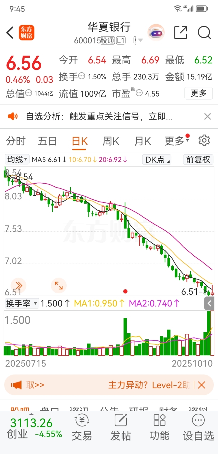 $华夏银行(SH600015)$ 坐了电梯一路向下,两天又放量是到十八层地狱了吗?