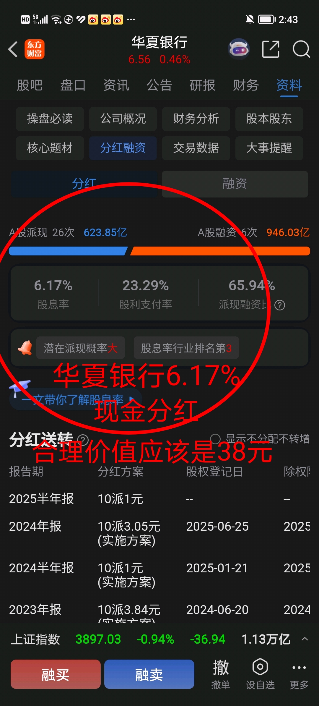 场外踏空资金最值得买最赚钱性价比最高就是华夏银行6.6元股价相当于上证指数263