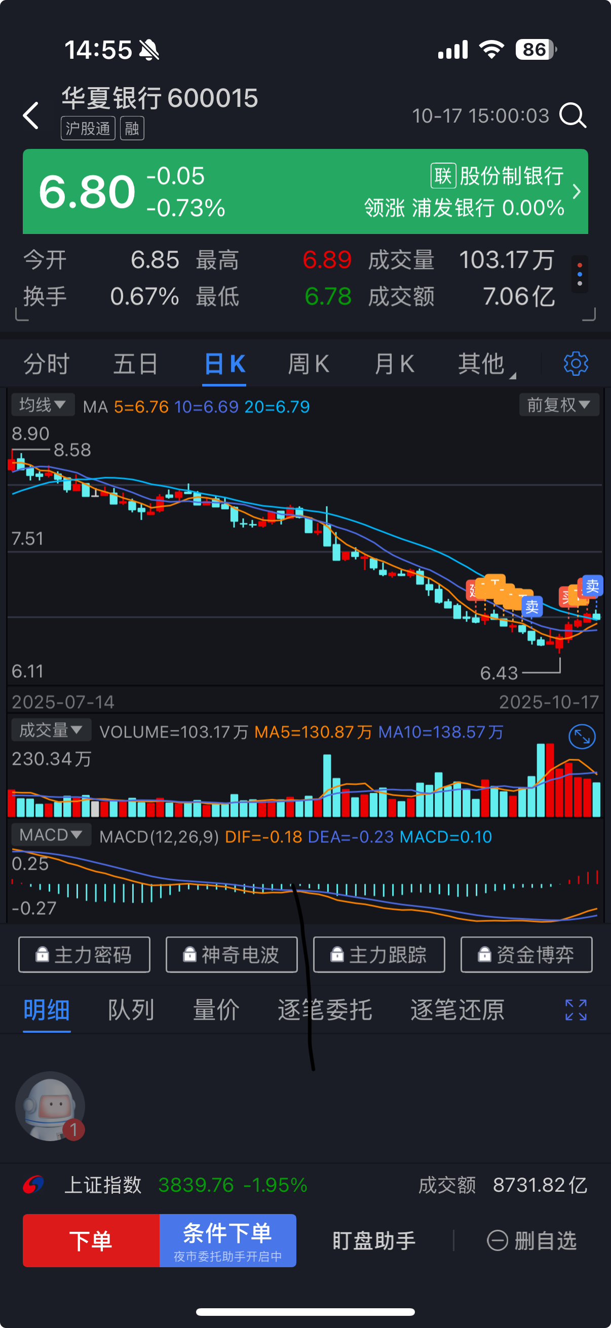 华夏银行股票软件出现卖出信号,上次出现卖出信号靠谱