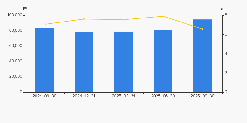 自2024年12月31日以来,公司股东户数连续3期上涨,截至目前增幅为20.21%。2024年12月31日至2025年9月30日区间股价下降13.63%。