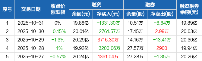 华夏银行:融资净偿还1331.3万元,融资余额19.88亿元(10-31)