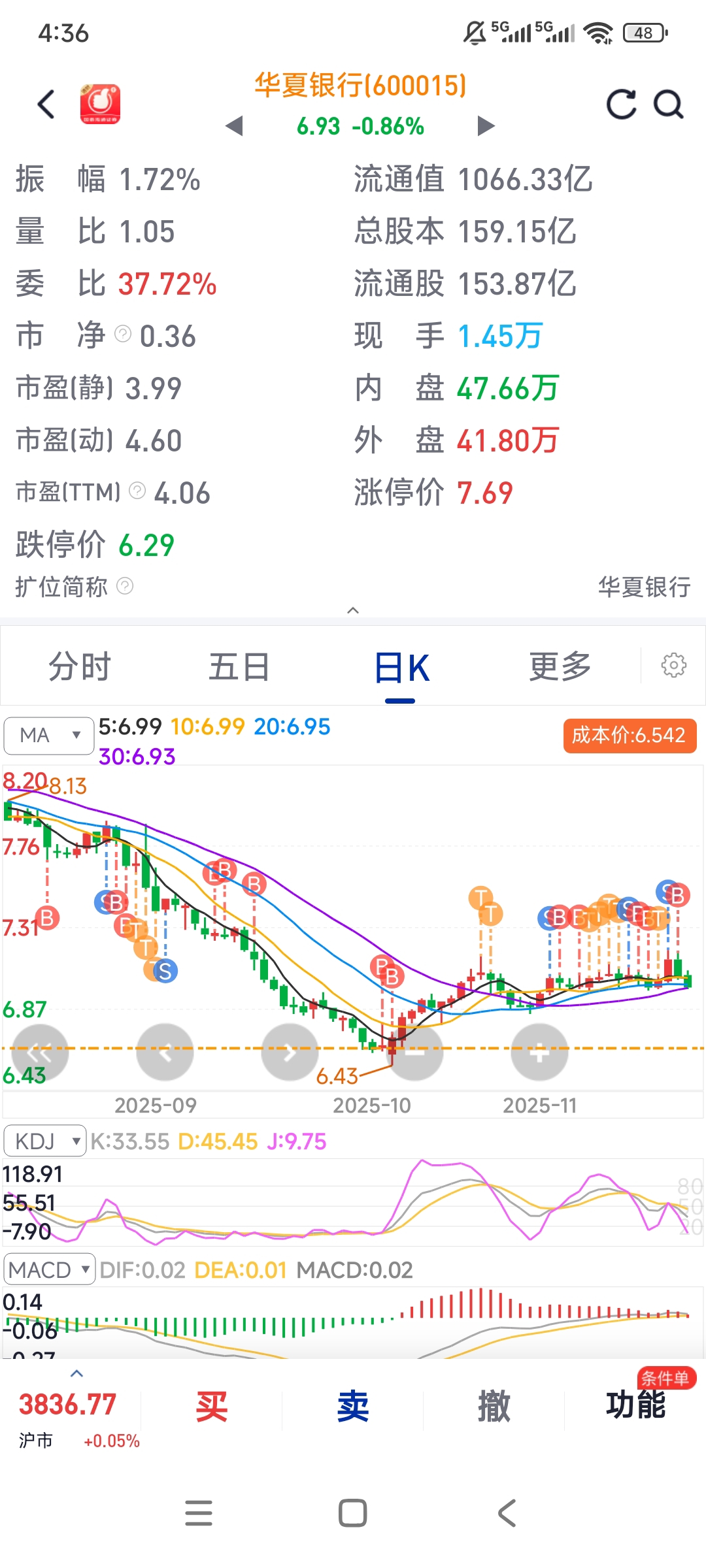 $华夏银行(SH600015)$ 这种行情,不做t绝对要亏啊。