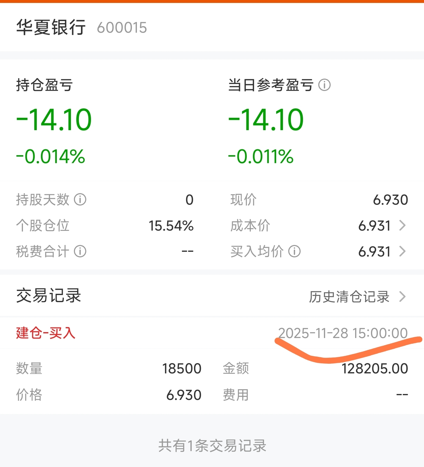 $华夏银行(SH600015)$ 下午3点买进来的,与你们同在……