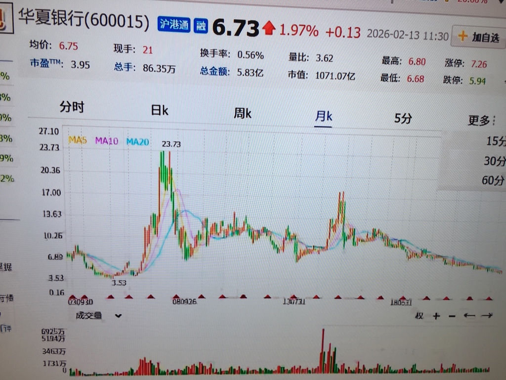华夏银行历史最高价格竟然是23.73元(分红除权后的价格),感觉就是47元买中国石油,从此不用买空调(高处不胜寒)!