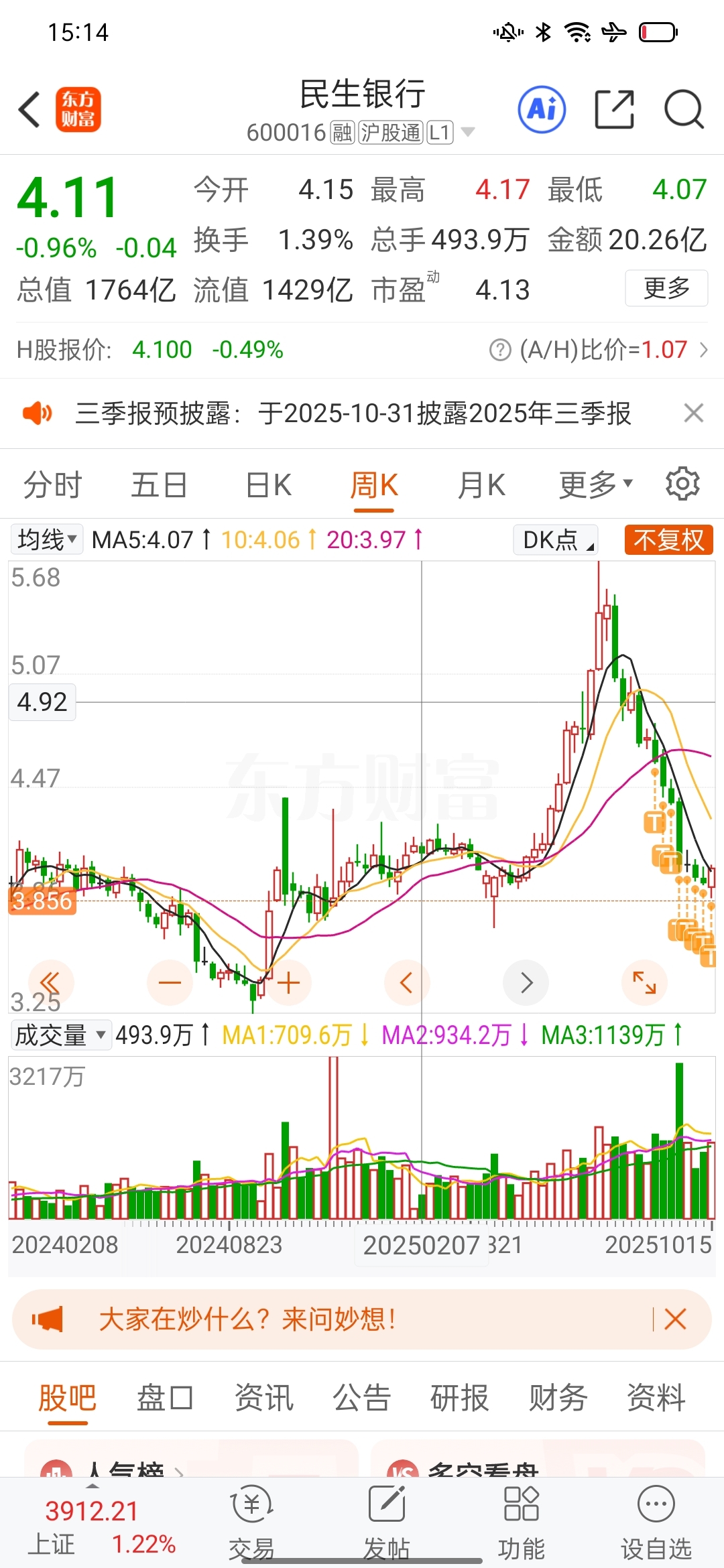 $民生银行(SH600016)$ 只要功夫深,老庄也怕我难过的是把松鼠和精工换成万达,今天那两货乘我昨天全部卖出,今天赶紧拉,我勒个去,盯着我啊!!!!
