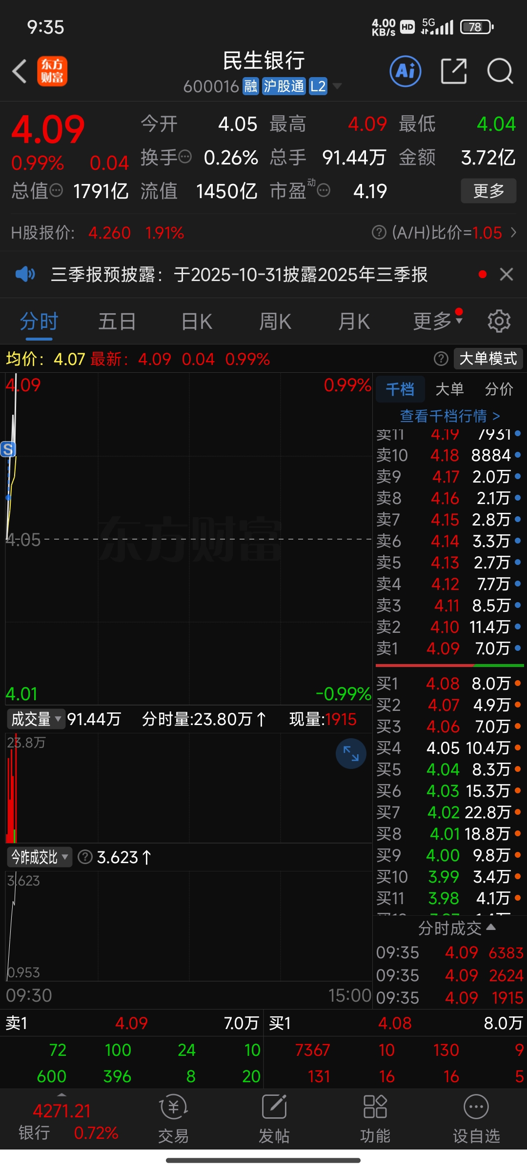 $民生银行(SH600016)$ 报告主力,我406就卖了。我很难过