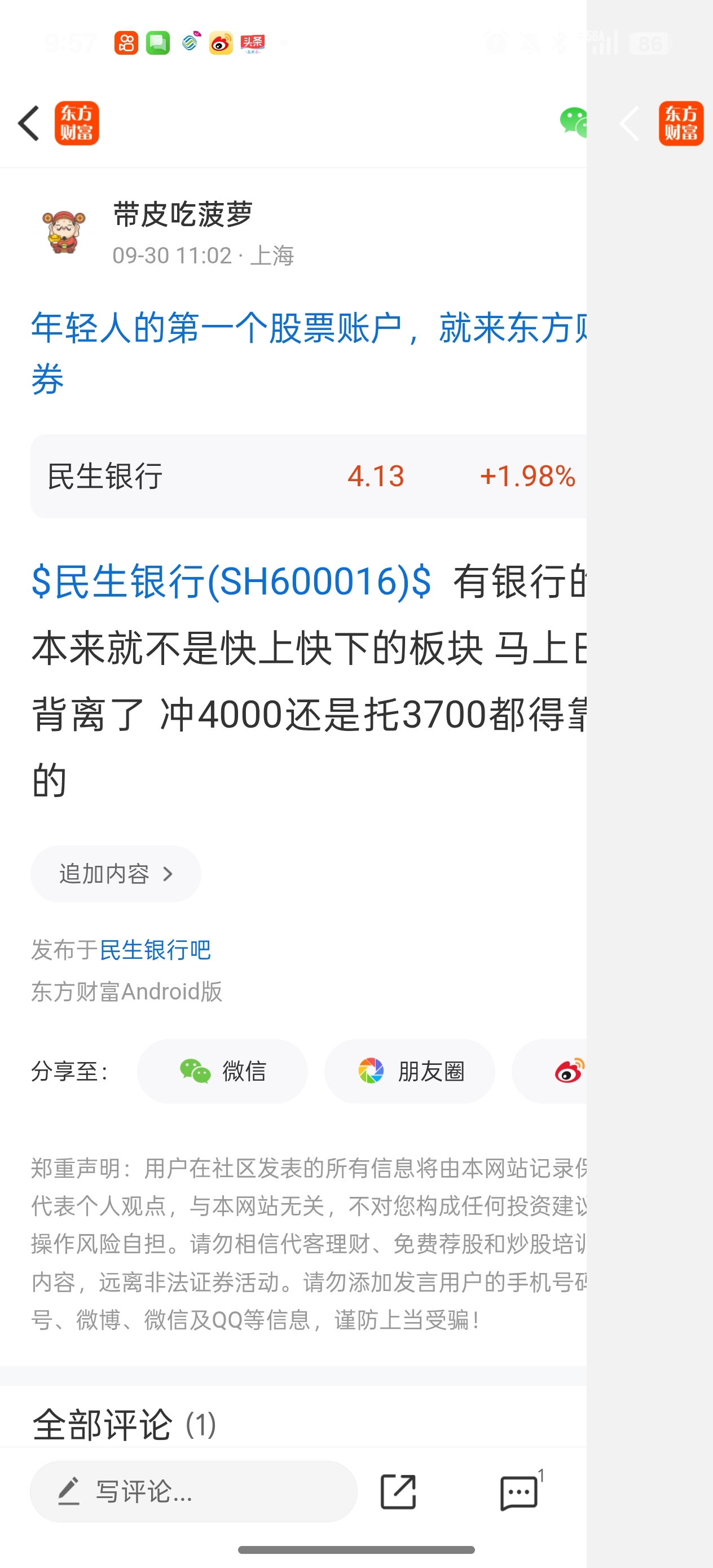 温馨提示: 1.根据《证券法》规定,禁止编造、传播虚假信息或者误导性信息,扰乱证券市场;2.用户在本社区发表的所有资料、言论等仅代表个人观点,与本网站立场无关,不对您构成任何投资建议。用户应基于自己的独立判断,自行决定证券投资并承担相应风险。《东方财富社区管理规定》