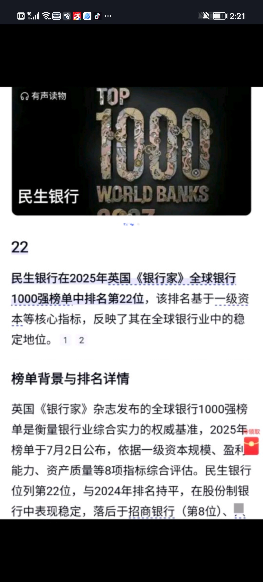 我也跟着全世界资金疯狂抄底中国银行股票了,特别是世界排名第22位的民生银行4.1