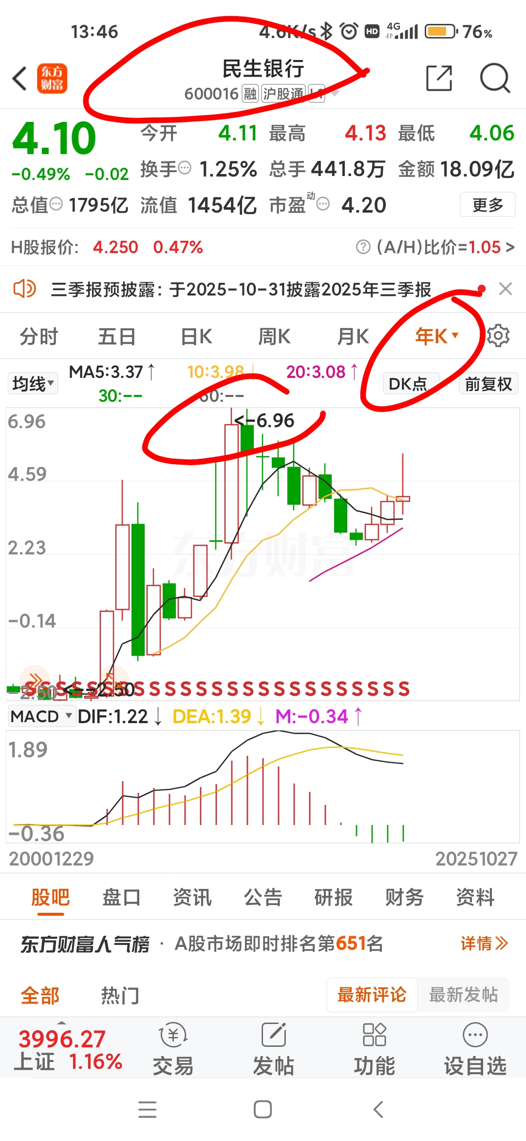 $民生银行(SH600016)$ 多的不必说,民生银行是国内最垃圾的银行!很大可能套足20年
