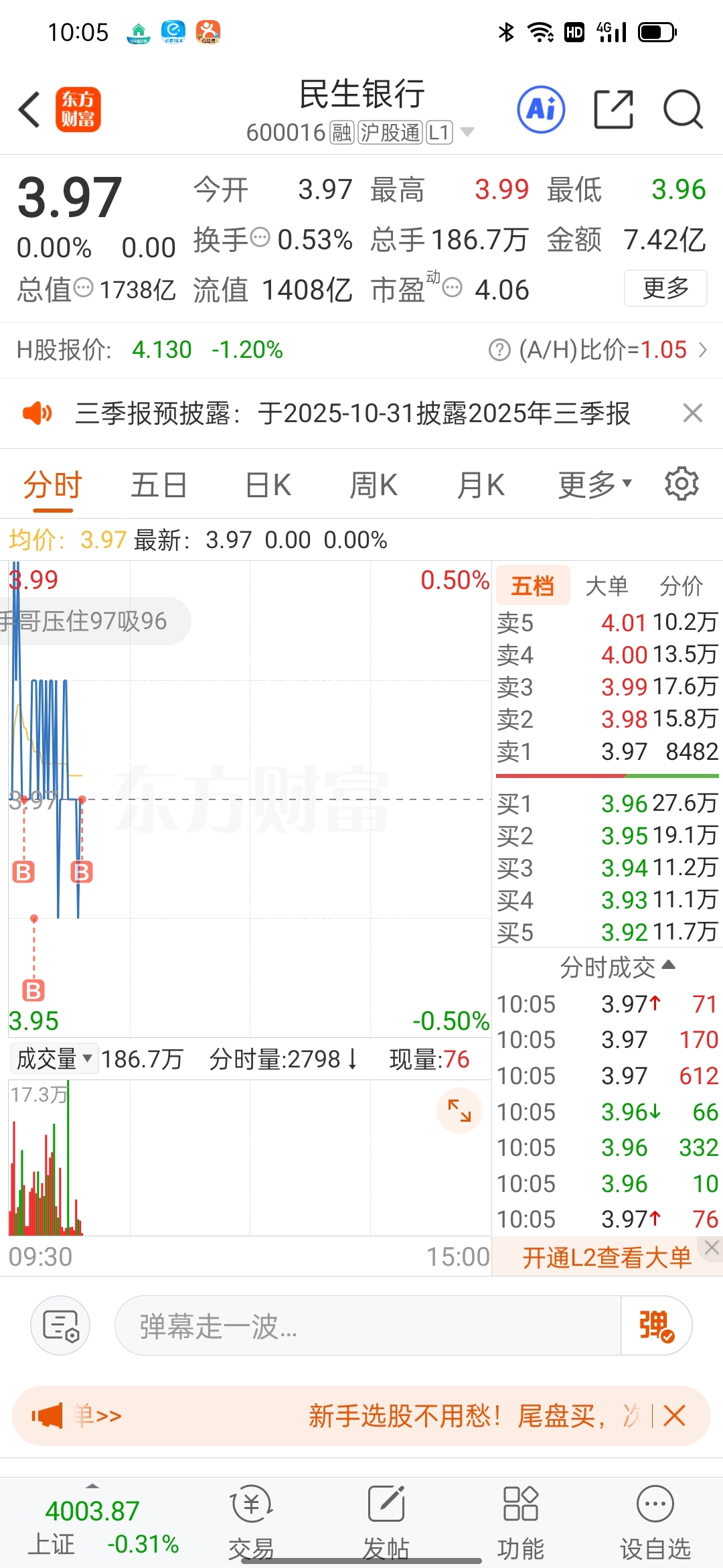 $民生银行(SH600016)$ 大家听我的,一起买,4.15出,不出一月就能到