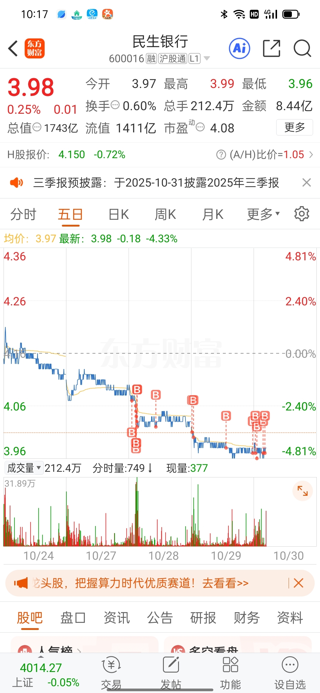 $民生银行(SH600016)$ 你们快抄底,我都还亏钱呢,快来快来抢主力筹码