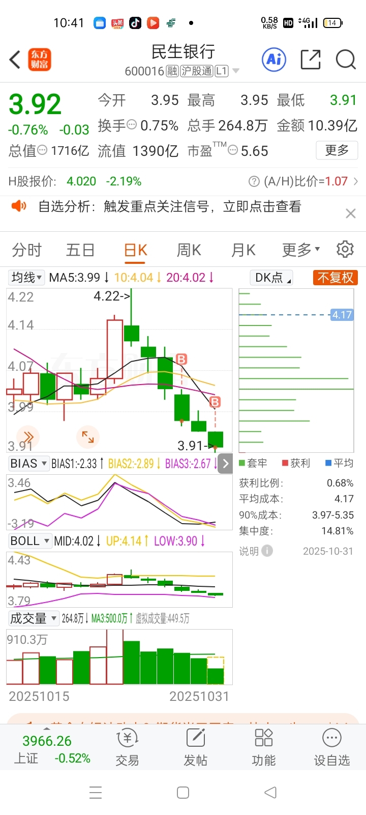 $民生银行(SH600016)$ 除了加仓我能怎么办!