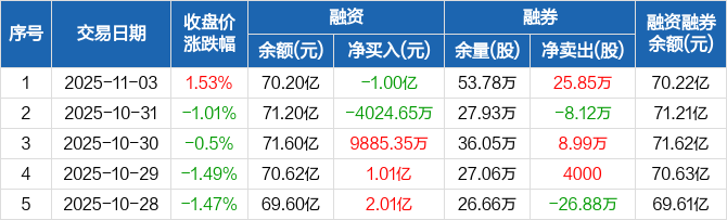 民生银行:融资净偿还1亿元,融资余额70.2亿元(11-03)