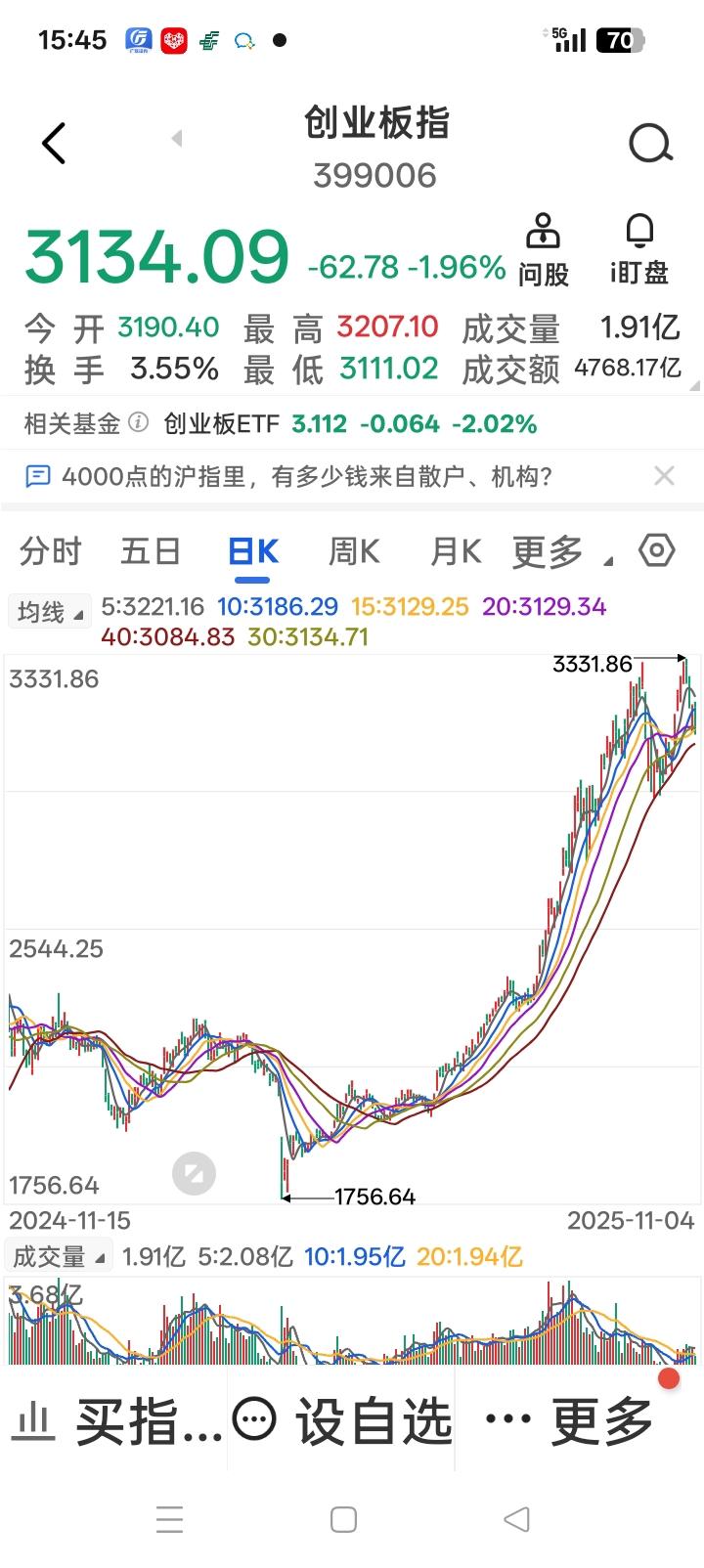 $民生银行(SH600016)$ 大家看看创业板K线图,呈现双头顶特征往下走概率最大。看看民生银行日K线图,目前在山脚下往上走的概率最大。一个是提示风险一个是提示机会。你们千万不要买民生,等我买够了再下手。谢谢