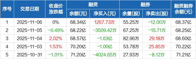 民生银行:融资净买入1267.73万元,融资余额68.34亿元(11-06)