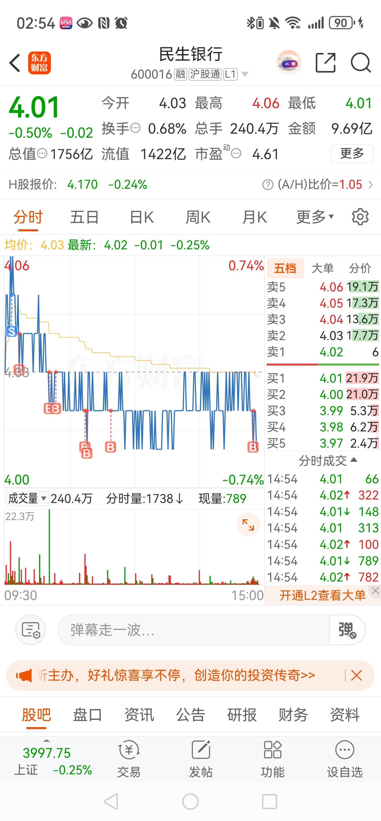 $民生银行(SH600016)$ T都做不了,真厉害这控盘