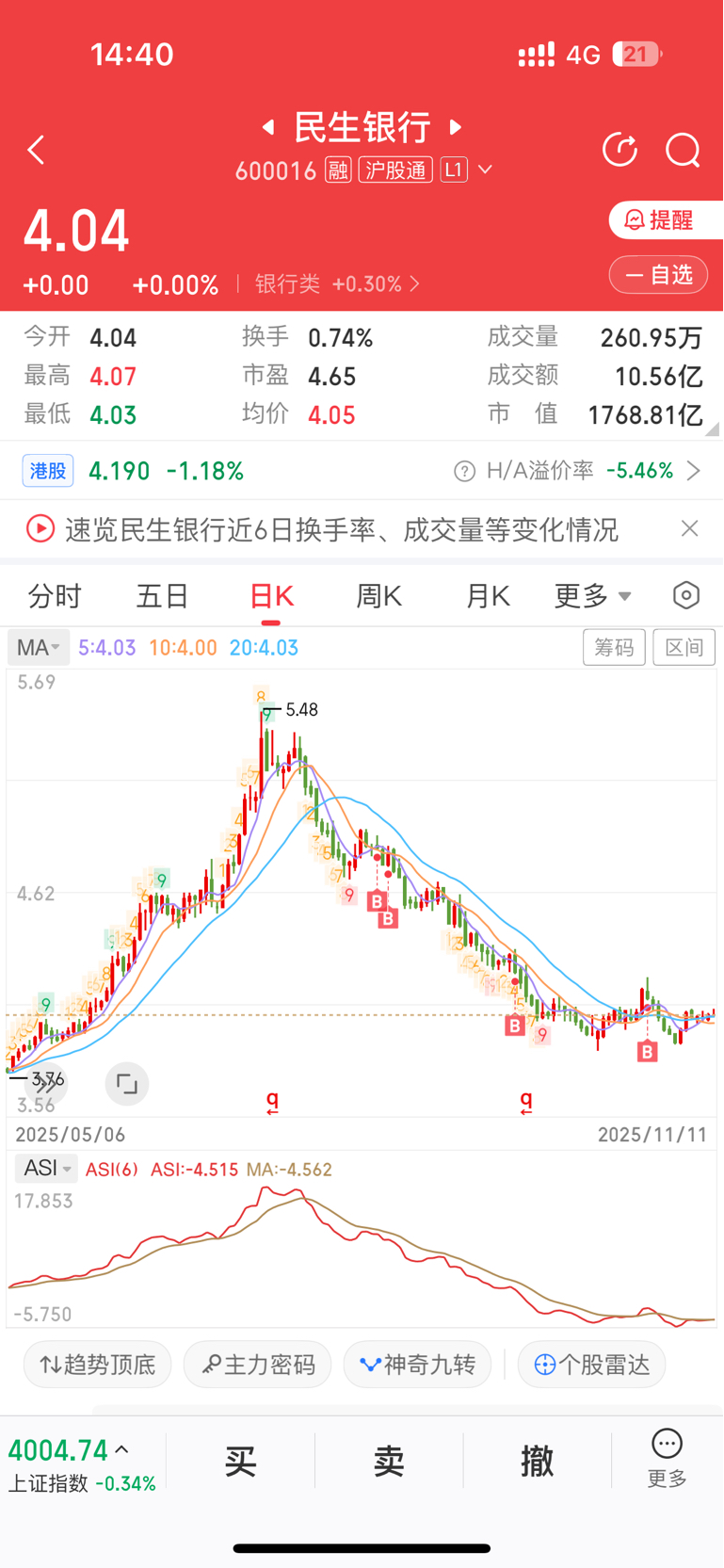 $民生银行(SH600016)$ 买到假银行,只跌不涨。