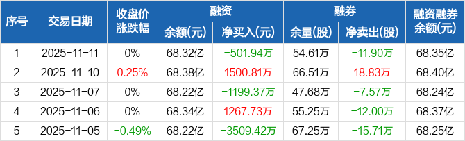 民生银行:融资净偿还501.94万元,融资余额68.32亿元(11-11)