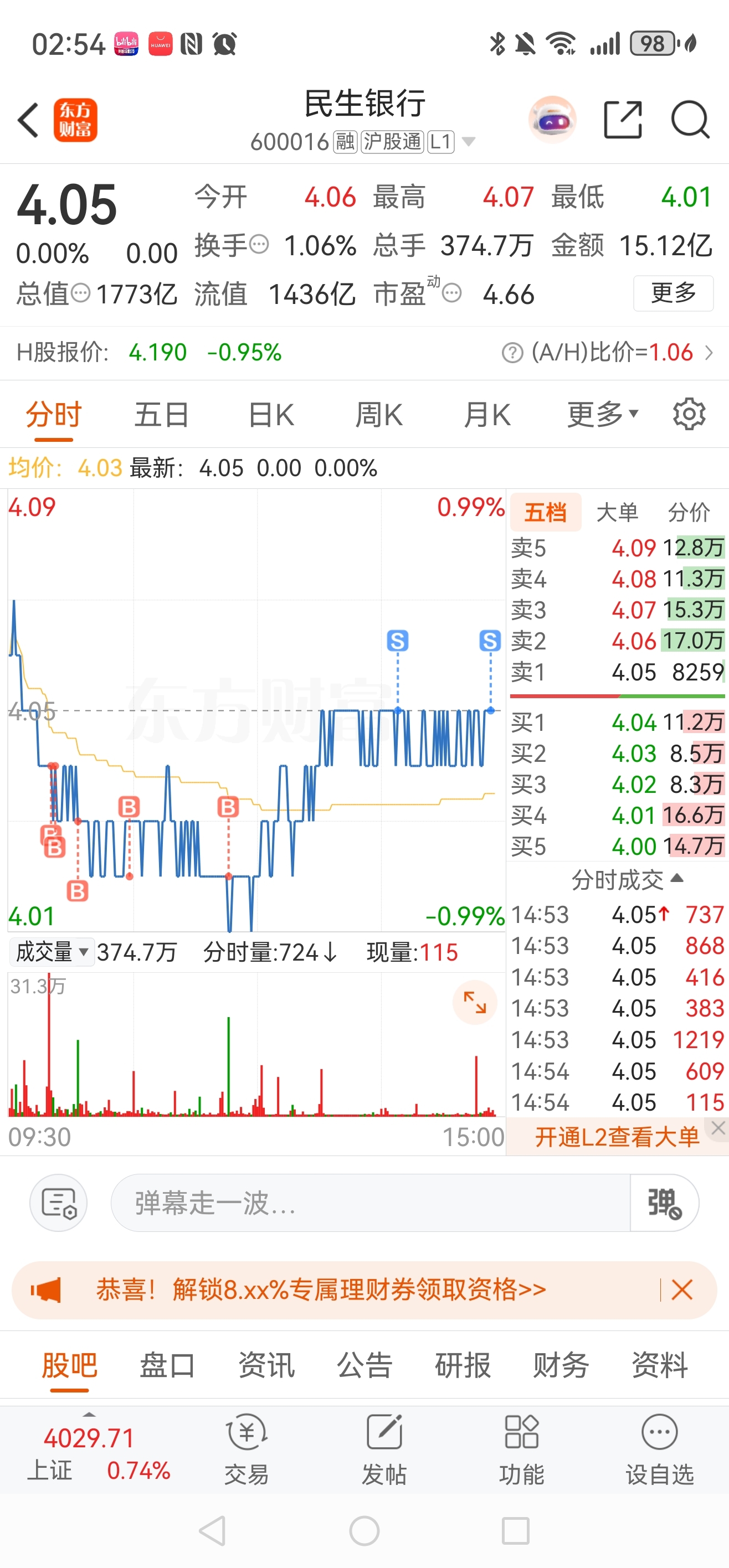 $民生银行(SH600016)$ 又又又又做了个T哈哈哈哈哈