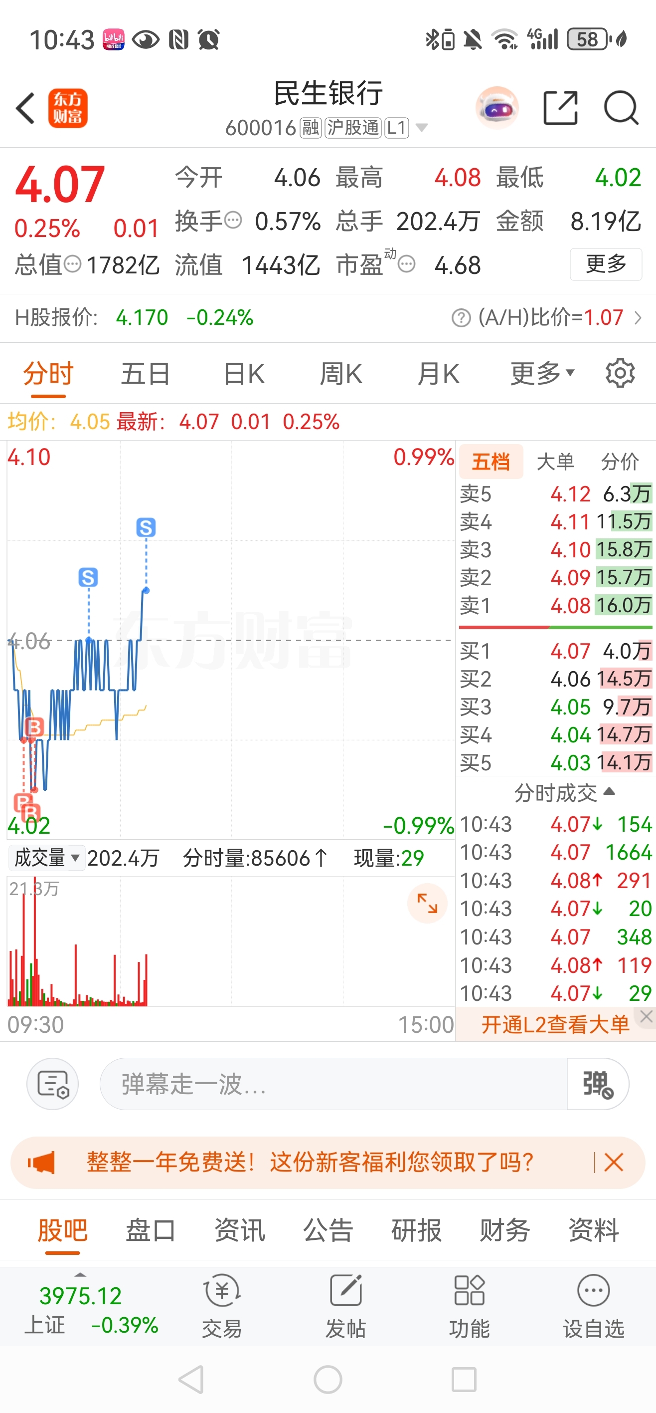 $民生银行(SH600016)$ 这个T做的真不错,赚了300多,仓位还没少