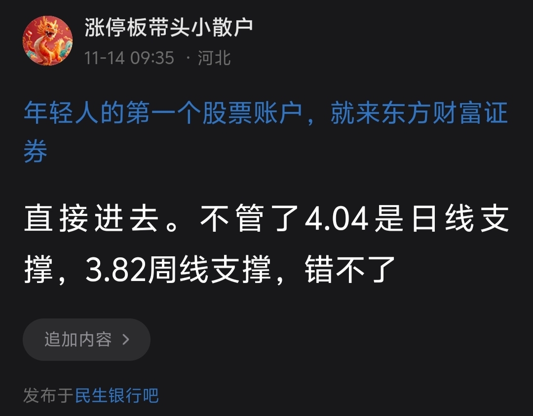 $民生银行(SH600016)$ 4.04还是不错的买点,