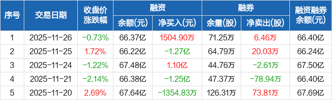 民生银行:融资净买入1504.9万元,融资余额66.37亿元(11-26)