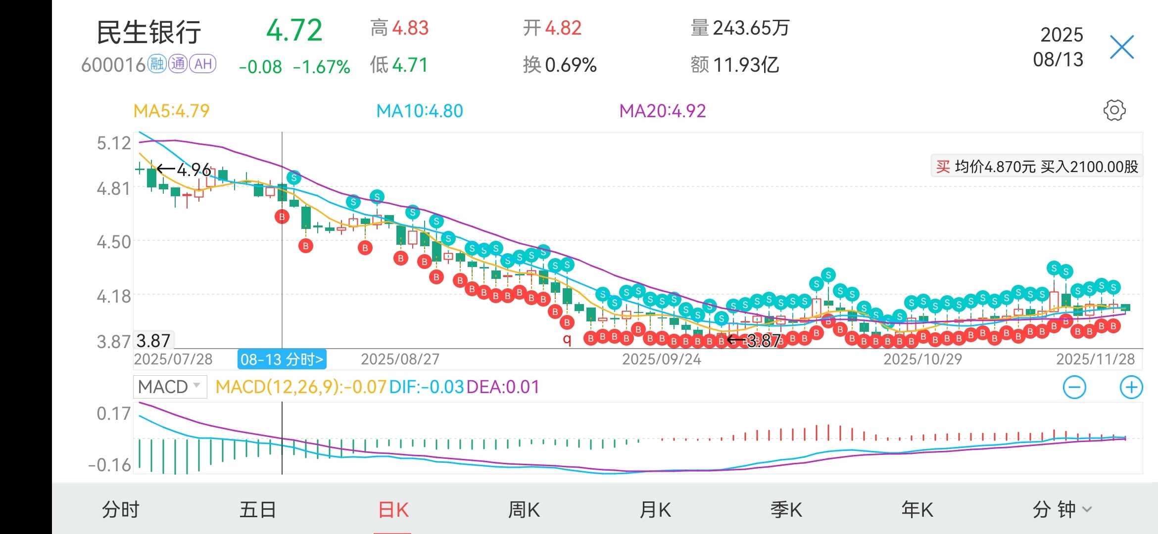 $民生银行(SH600016)$ 487开始建的仓。问三年后能零成本吗?