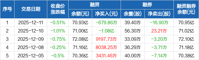 民生银行:融资净偿还679.86万元,融资余额70.93亿元(12-11)