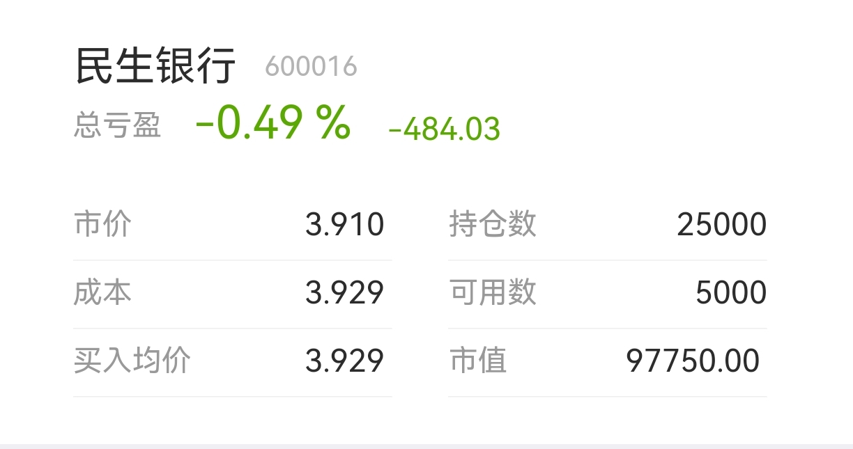 $民生银行(SH600016)$ 民生银行,我再次进入,做一次短线,这次目标赚3%。目标价4.05。
