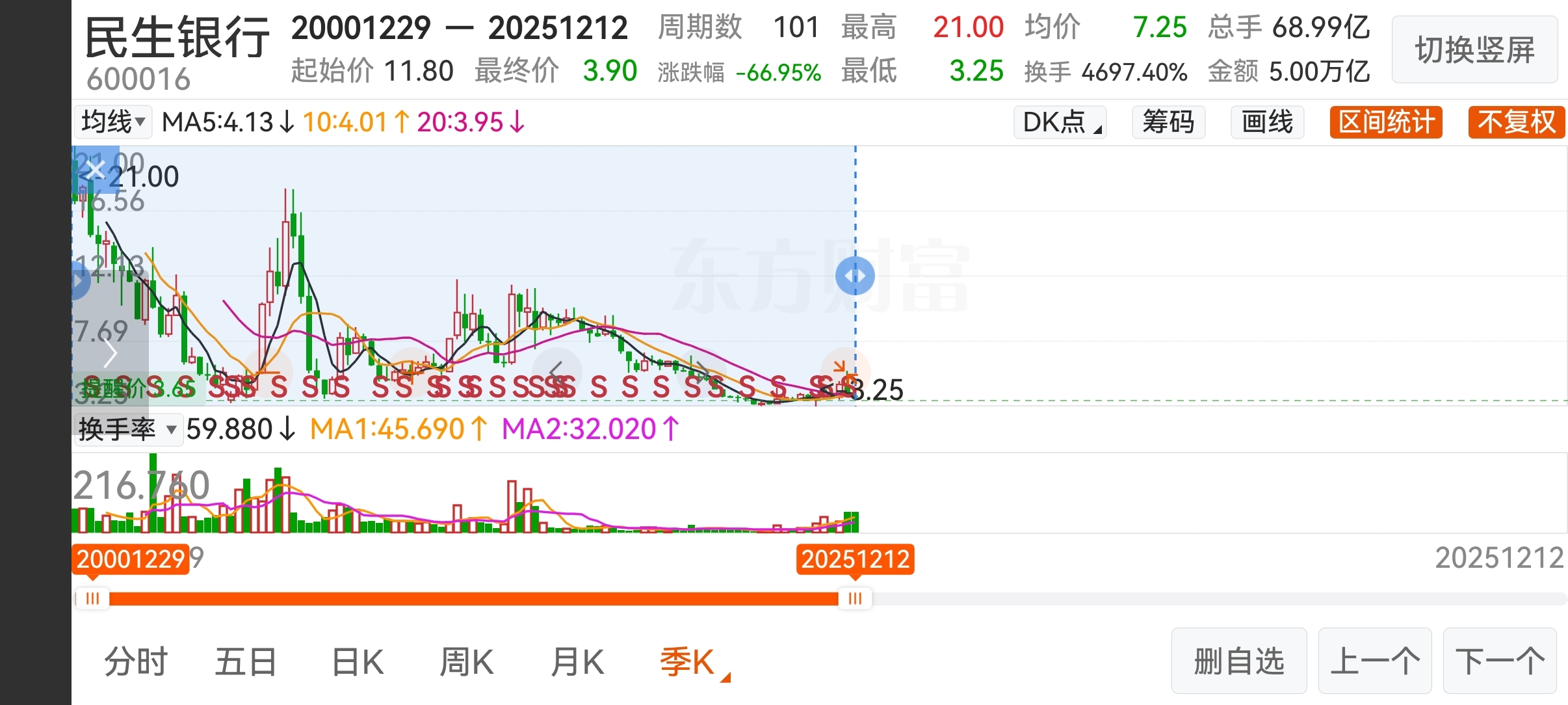 民生跌到三块五,考虑买亿点