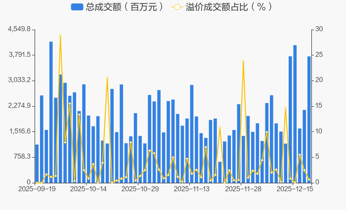 2025年12月18日沪深两市78只个股发生167笔大宗交易,共成交37.55亿元。其中,沪市38只个股共69笔大宗交易,总成交额为31.27亿元;深市39只个股共97笔大宗交易,总成交额为6.24亿元。沪指当日收盘报3876.37点,上涨0.16%,成交金额7048.96亿元。