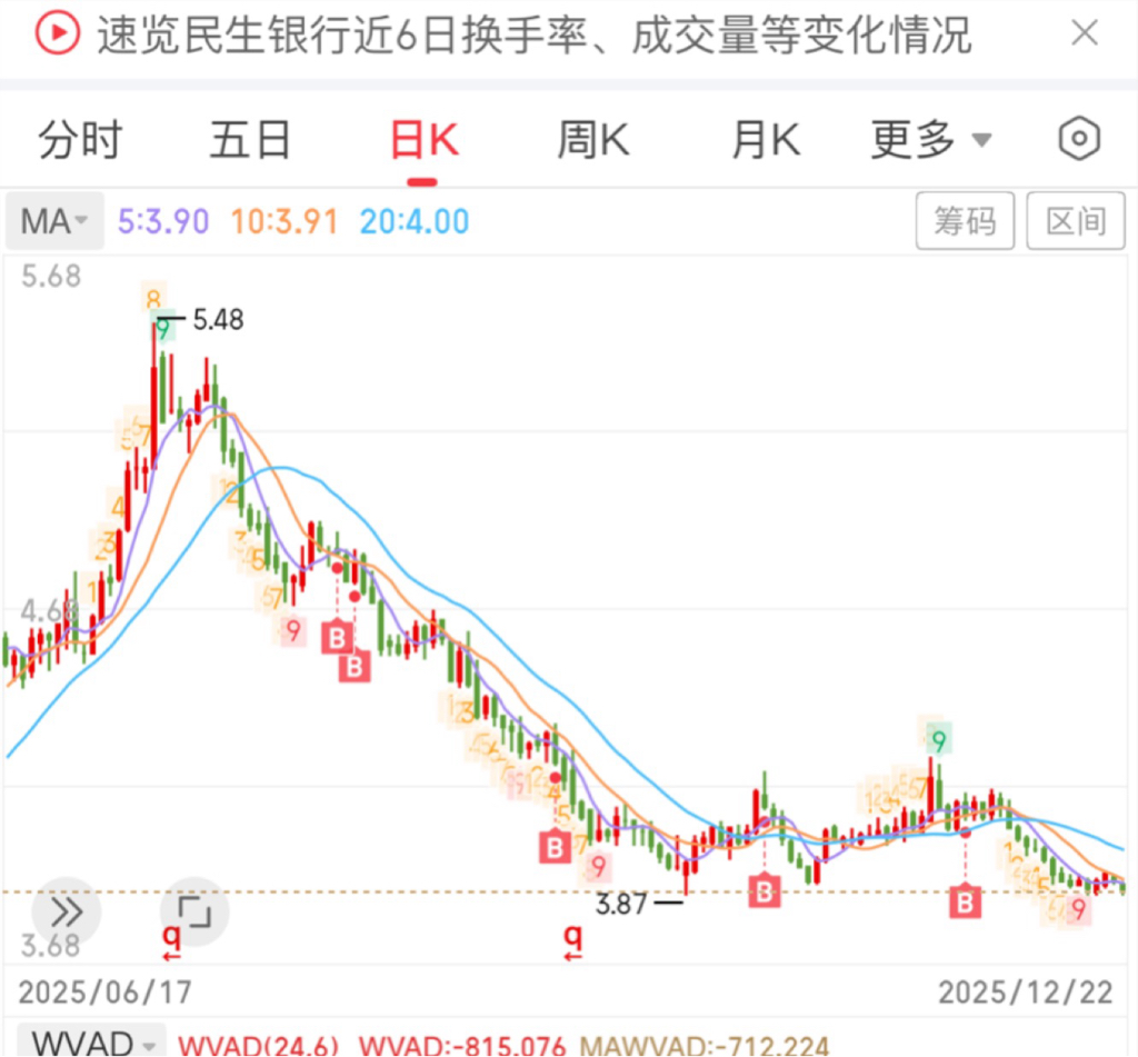 $民生银行(SH600016)$ 它砸这么能跌阿,一点不反弹啊