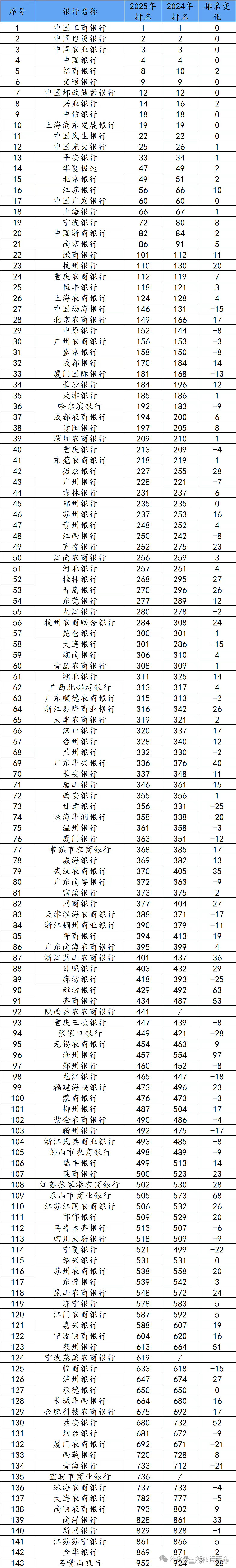我国大陆143家银行入列《银行家》2025年世界千强银行榜