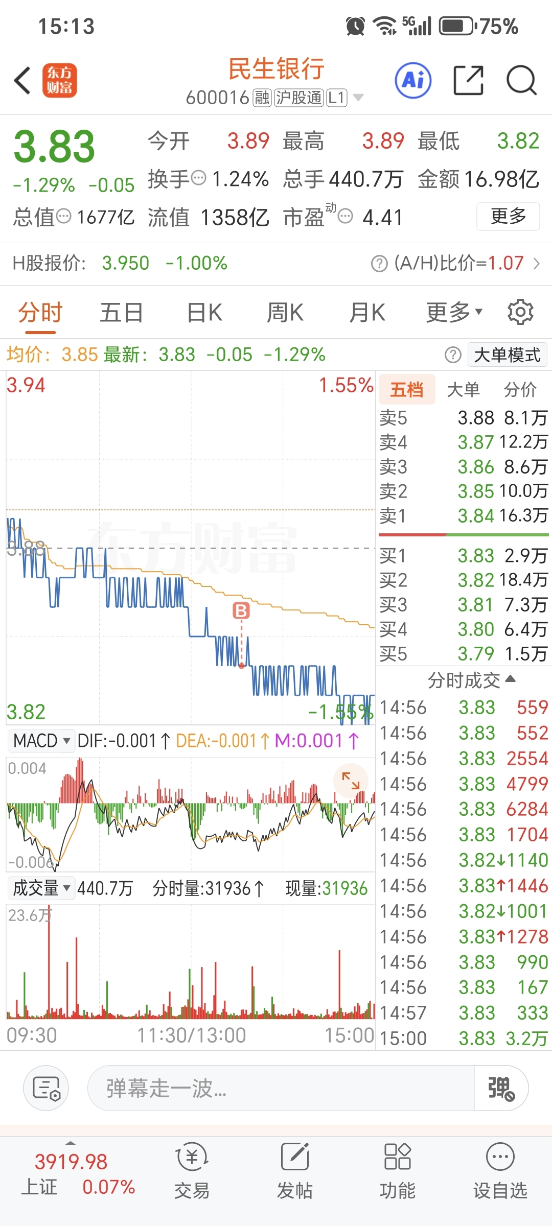$民生银行(SH600016)$ 已经六成仓位了,剩下四成设置成破3.5加仓。3.89的成本,明天涨不了就躺平删软件了,有本事退市算我输,钱就当捐款消费了。你们爱割肉割肉,反正我是不会割的,宁愿退市清零。有股息分红拿股息分红,没有算球。