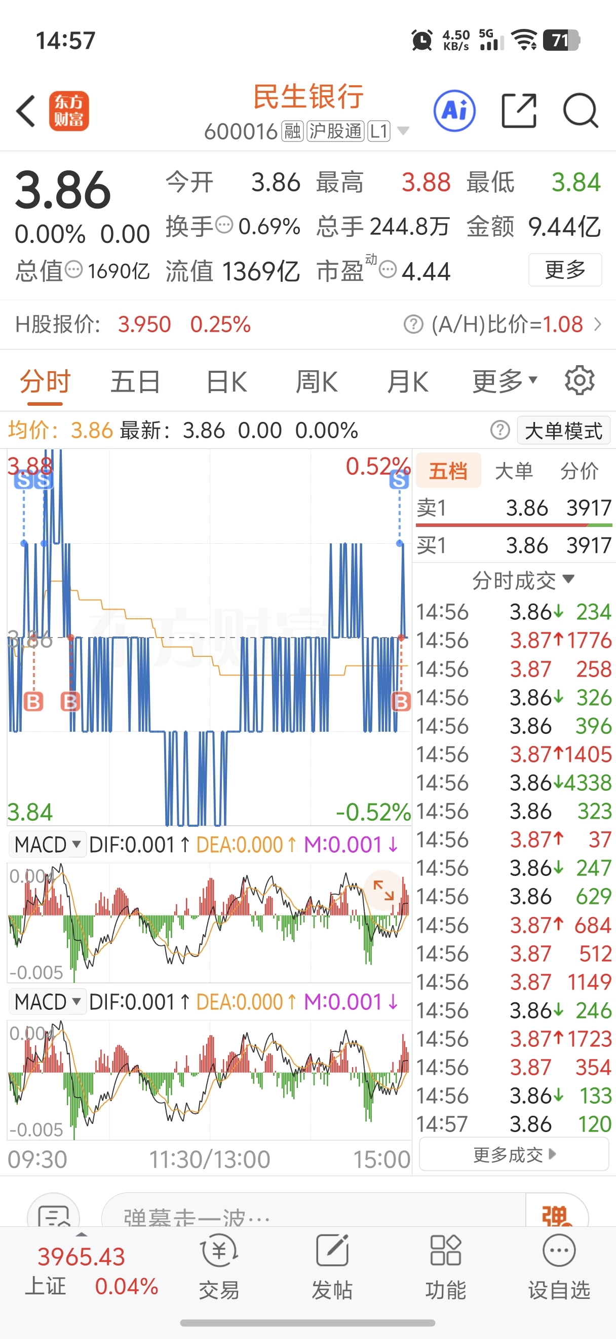 $民生银行(SH600016)$ 不用亏