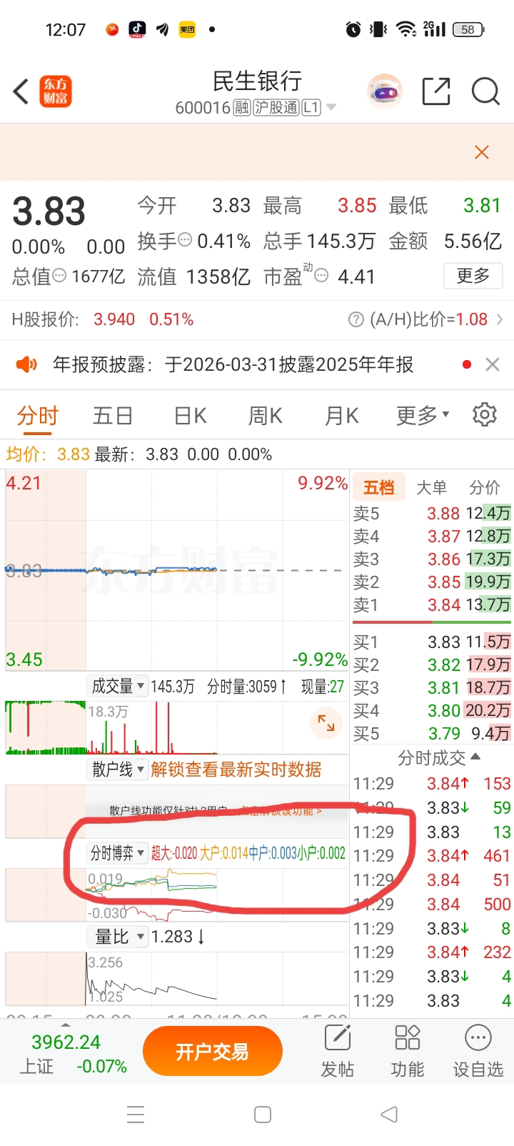 $民生银行(SH600016)$ 超大单卖出,大单买入,中单买入,小单买入。难道超大单是?