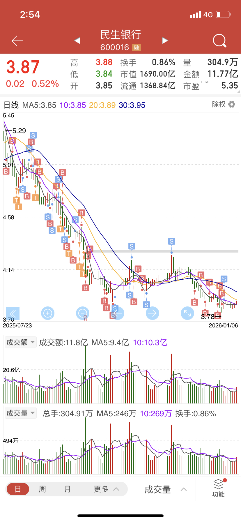 $民生银行(SH600016)$ 敢跌就敢买,敢涨就敢卖..这辈子就死磕到底