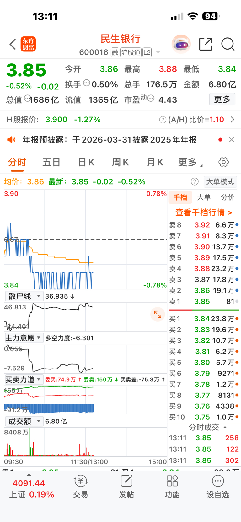 $民生银行(SH600016)$ 散户仍在买入,无戏!