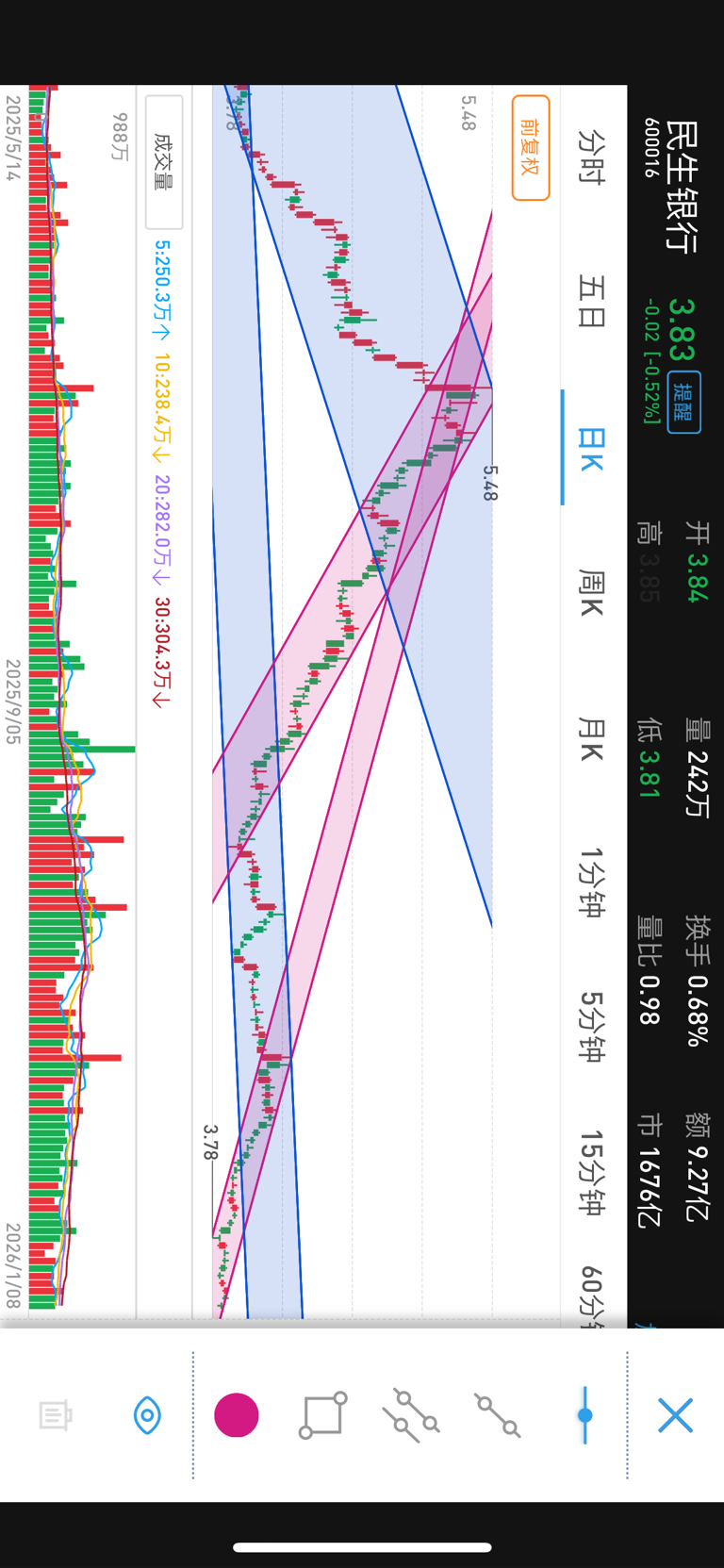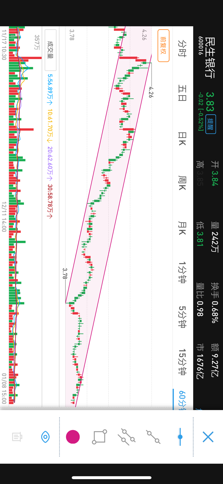 $民生银行(SH600016)$ 哎,无法跟趋势作对,下降趋势,老是突破不了,是一只无形的大手。