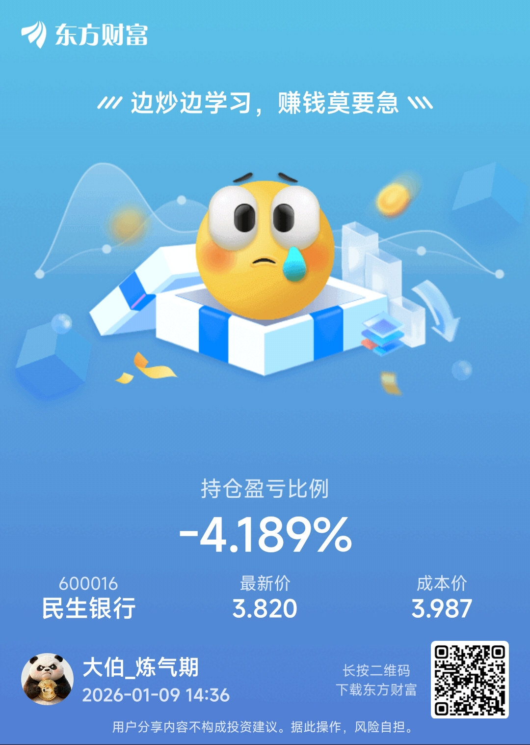 如果本次牛市没结束,民生银行没暴雷,那么3.62-3.75左右就差不多了。剩下的
