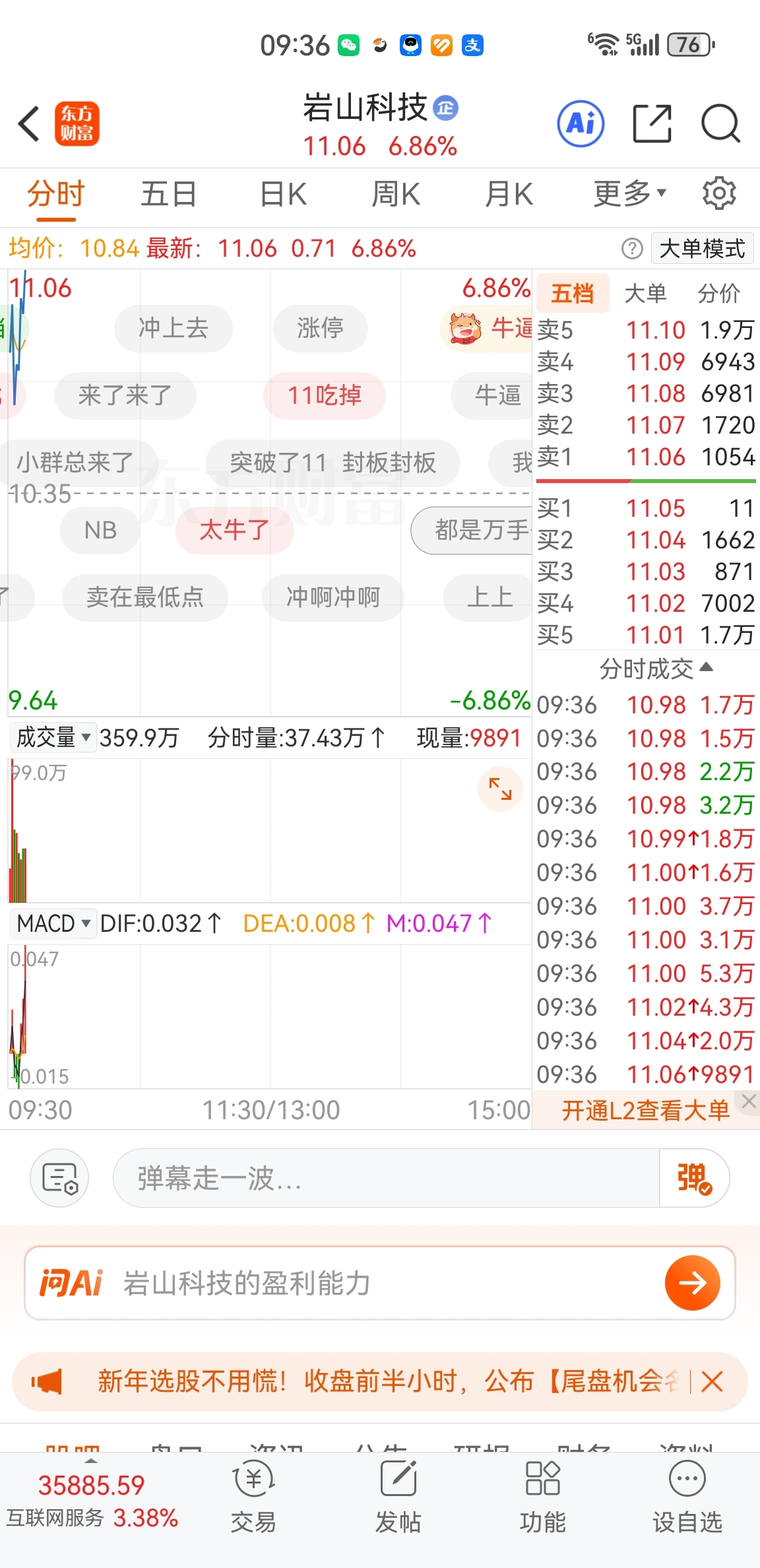 星期五割肉四分一仓位买入岩山,不知道是对还是错。