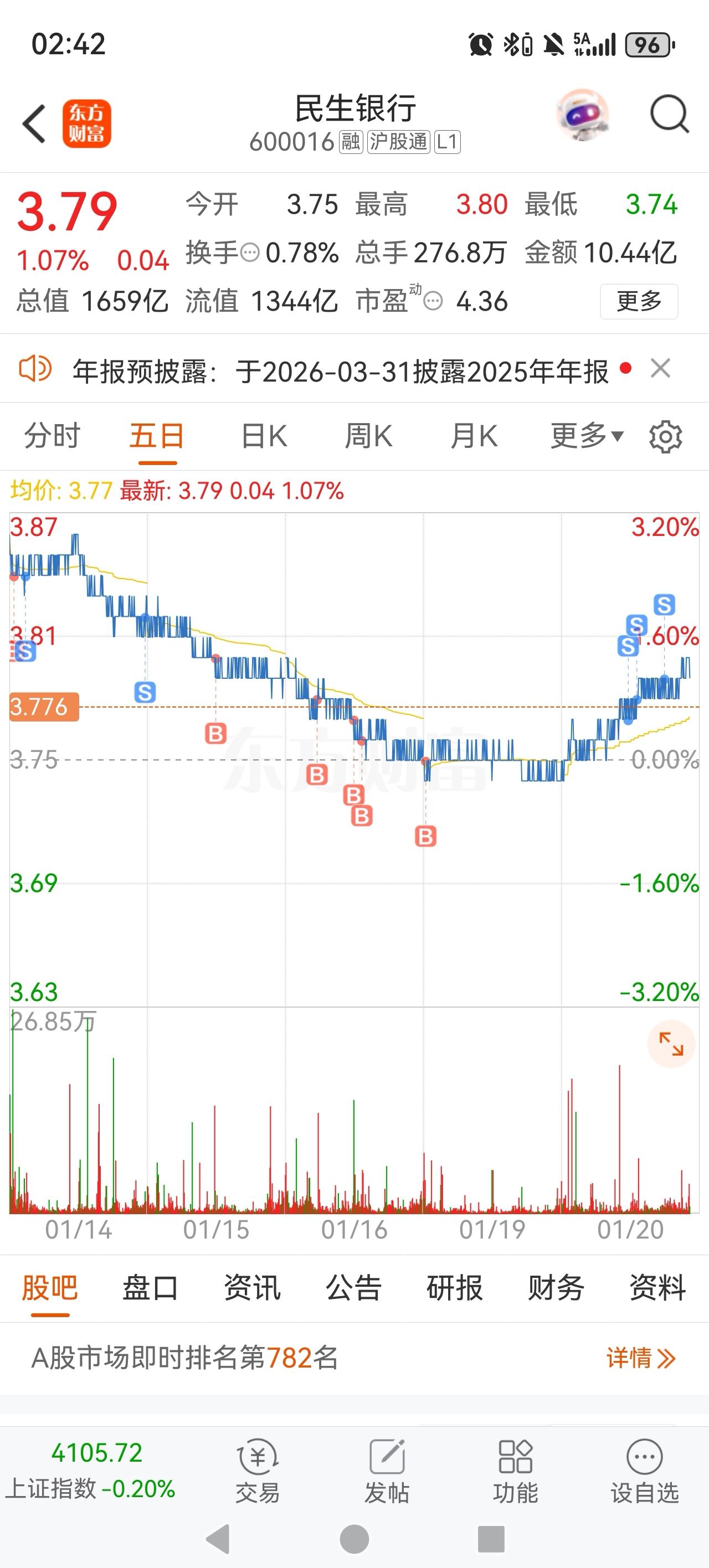 $民生银行(SH600016)$ 在我成本线上下反复横跳,做T赚了个几百草了