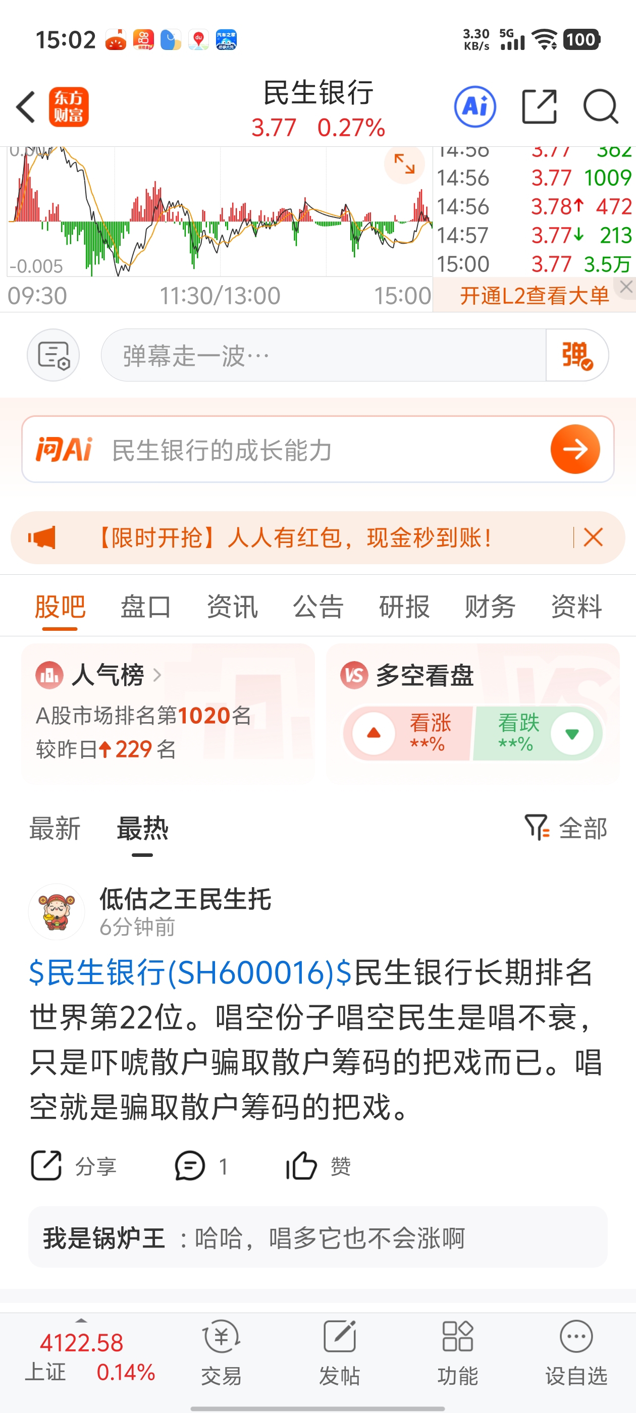 $民生银行(SH600016)$ 有你不会涨